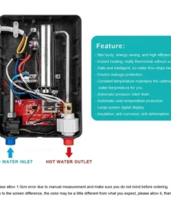 Chauffe-eau électrique instantané sans réservoir, chauffe-eau pour salle de bain 110V/220V, douche sans réservoir avec thermostat intelligent, sûr et automatique